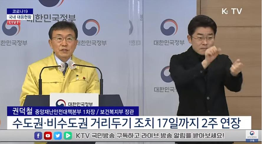 정세균 / 국무총리 수도권에서 사회적 거리두기 2단계를 시작한 지 2주가 되어갑니다 거리두기 연장. 또 개인간 접촉을 줄여 감염확산을 억제하는데 효과가 컸던 '5인 이상 모임 금지'와 '오후 9시 이후.